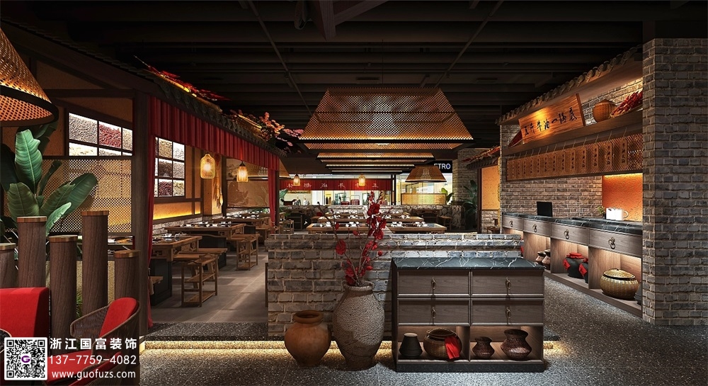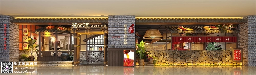 川式老火鍋店裝修設計案例效果圖